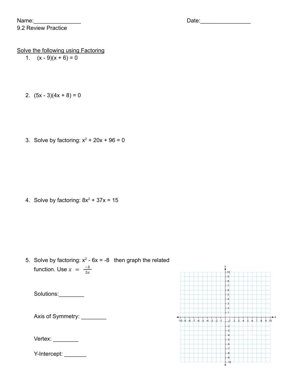 Solve by factoring. When typing in your answer, please use the form: x = -1,4 No spaces. Separate by a comma. List your answers from smallest to largest.