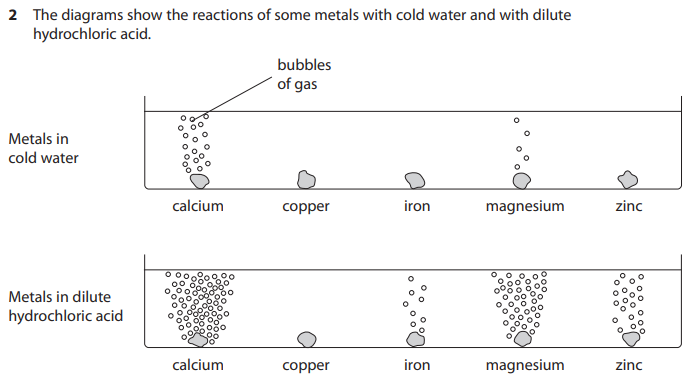 Place the metals in order of reactivity from most reactive at the top to least reactive at the bottom