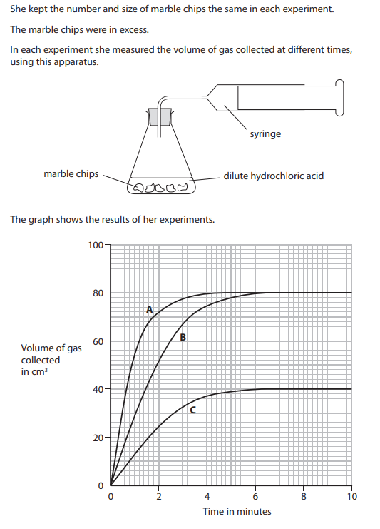 In which two experiments was the total amount of acid used the same? A and _________________.
