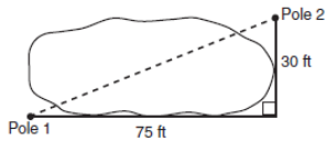 An overhead view of a revolving door is shown in the accompanying diagram. Each panel is 1.5 meters wide. What is the approximate width of d, (the opening from B to C)? Round to the hundredths place.