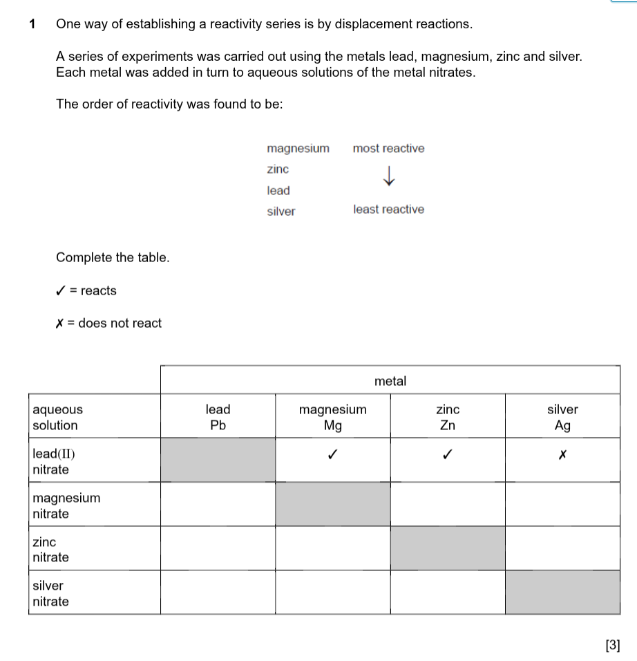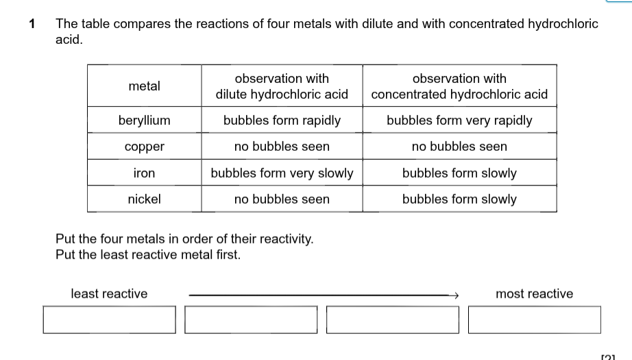 Note: metals above hydrogen in the reactivity series will not react with acids.