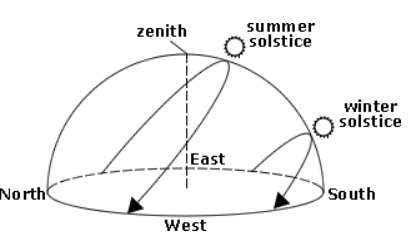 "Sun's Path Through Sky On Winter Solstice and Summer Solstice"