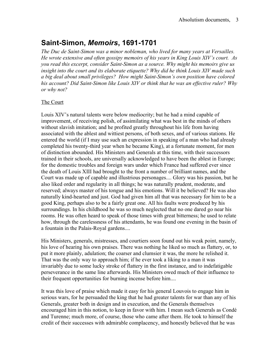 Why might his memoirs give us insight into the court and its elaborate etiquette?