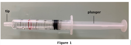 To better understand how compression affects the volume of gases and liquids, the student conducted investigations with a 3-milliliter (mL) plastic syringe (shown in Figure 1).