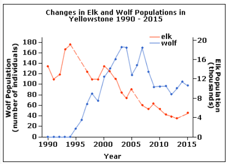 Over time, various direct and indirect changes have been observed. One such change, as the graph shows, is that the elk population decreased.