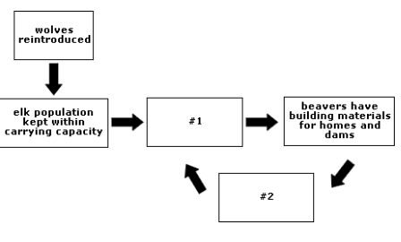 Another trophic cascade involved elk. Since wolves are the main predators of elk, the disappearance of wolves caused the elk population to increase. The consequences of elk population's growth wasn't only that elk consumed more vegetation, but also, without pressure to keep moving to avoid being hunted by wolves, elk began to stay put all winter, leading to overgrazing in some areas. Two of the plants elk overgrazed were willows and aspen, trees beavers rely on for food and for building materials for their homes and their dams. Thus, eventually, beavers started to disappear from Yellowstone, too. As beavers disappeared, so did their ponds. A lack of beaver ponds increased stream erosion. The disappearance of beaver ponds also meant a decrease in fish and amphibian species that relied on those ponds. Also, since the ponds are important to the growth of willow and other trees, those trees became even less plentiful. The decrease in trees led to a decrease in songbirds in Yellowstone.