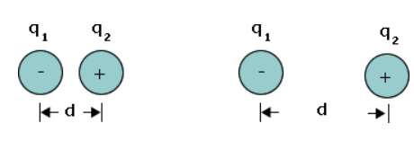 The force between charges q1Â and q2 is __________. When the distance between those two charges doubles, the force between the charges __________.