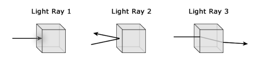 Models of light rays striking three different surfaces are shown below. Complete the table by matching each ray to the effect that the surface has on the ray. DOK 2