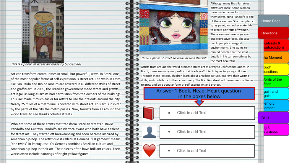 Using the nonfiction article about these two artists, answer one "in your heart" question below.