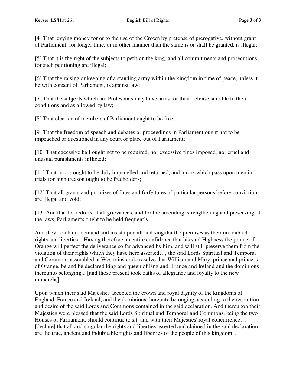 Would the English Bill of Rights still be considered a progressive document today? Why or why not?