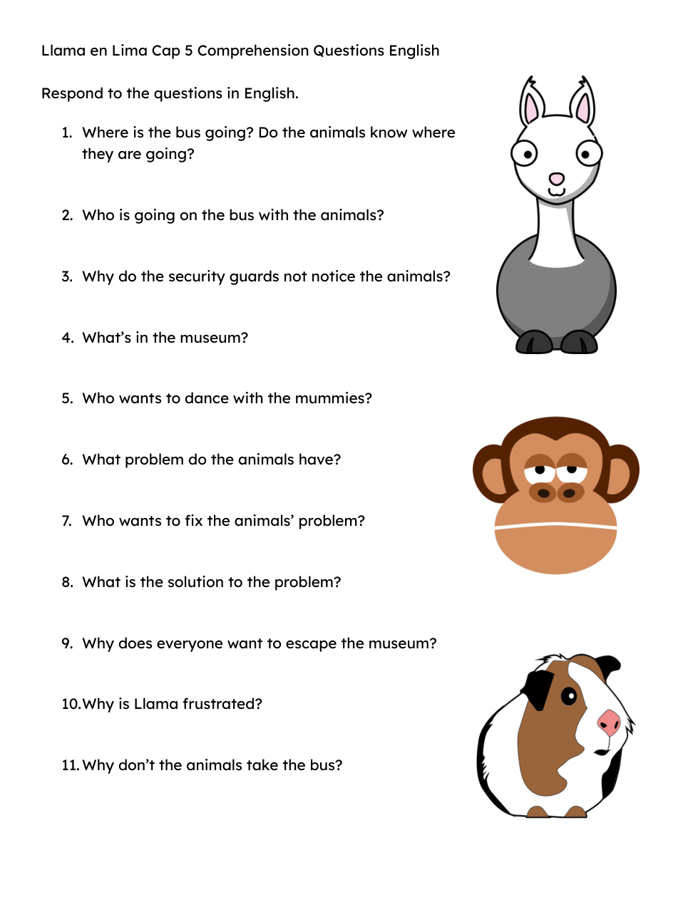 Llama | arrow_right_alt | Un animal grande, está aburrida en el parque zoológico. Tiene 2 amigos |