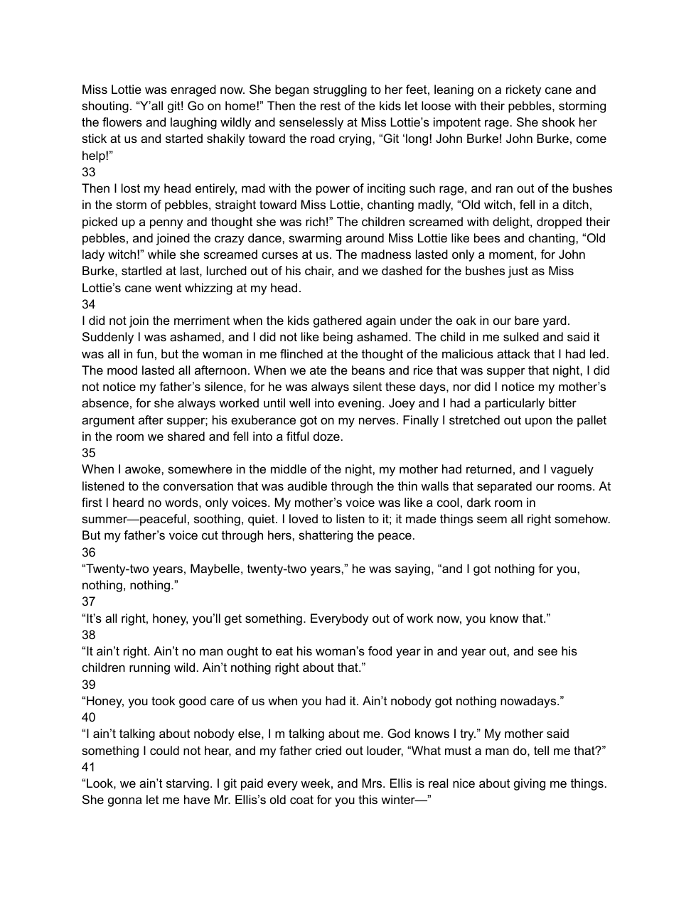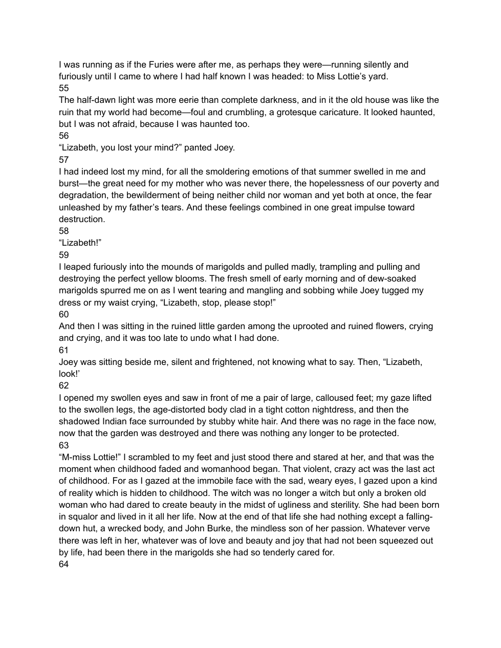 - Lisbeth faces Miss Lottie and realizes she is just an old woman who was broken.