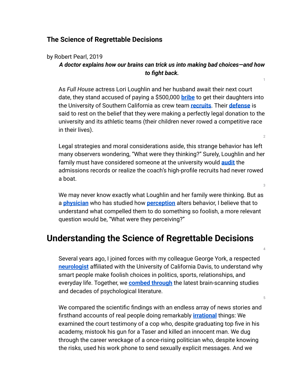 Write a summary of The Science of Regrettable Decisions. Do not use quotes from the text but instead paraphrase using key terms.