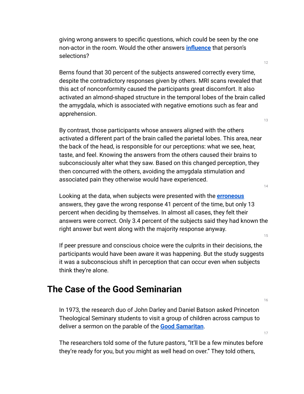 Most people were afraid to give their right answer when others around them gave a different answer.