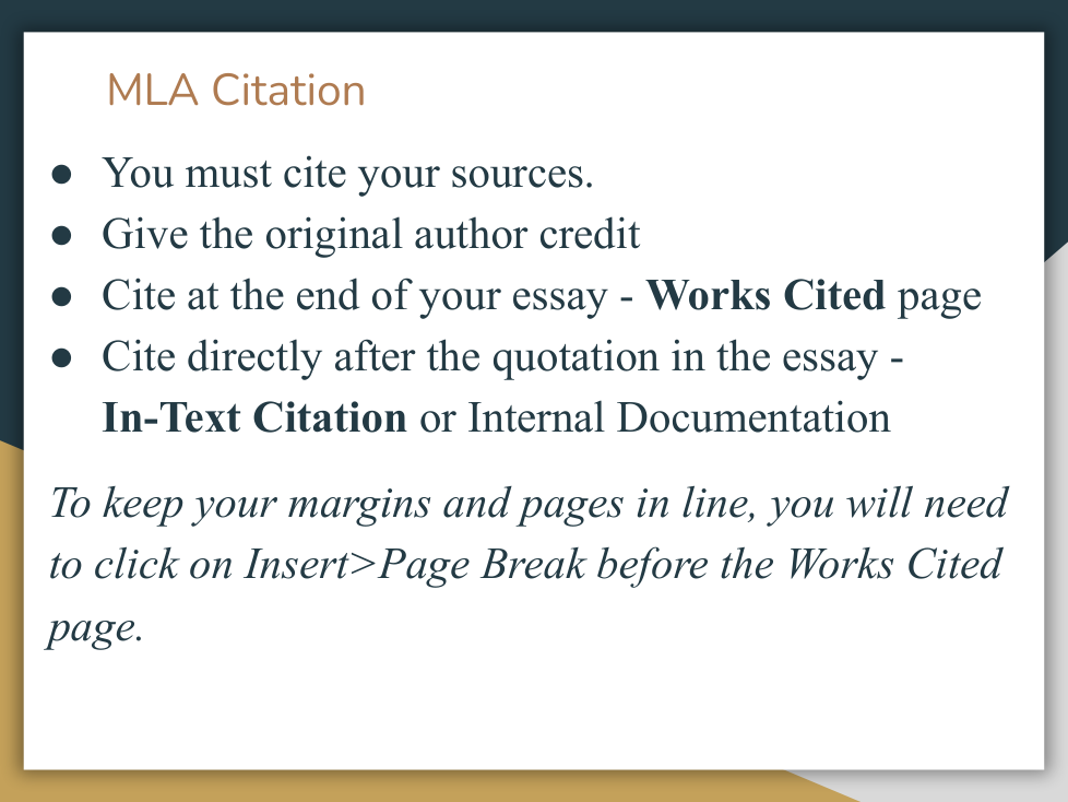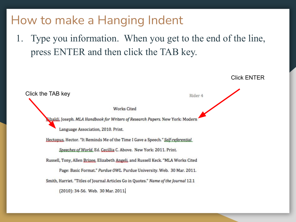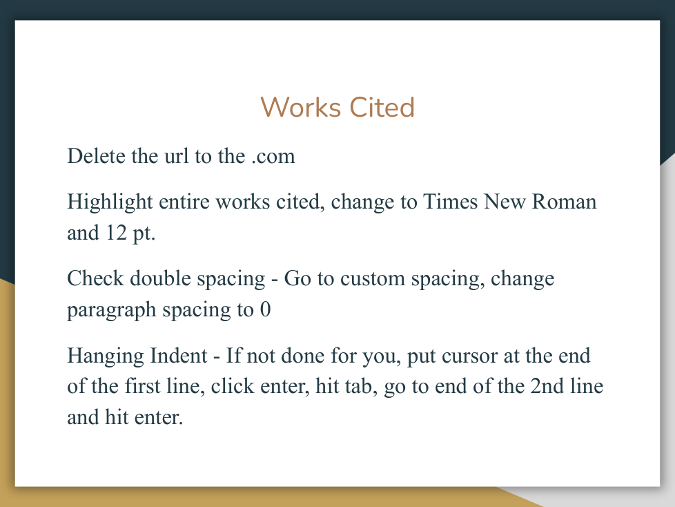 Complete the tasks and answer questions as you review the slides and watch the informational video on how to use mybib.com.