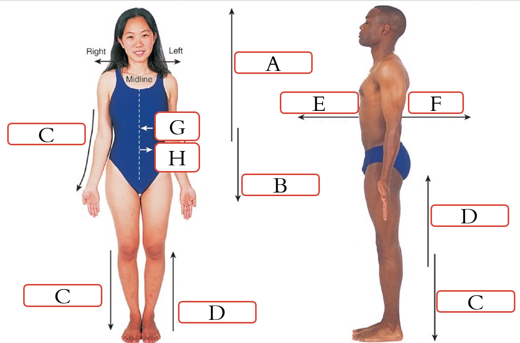 Match the letter on the diagram with the correct directional term, using the labels on the picture. L.O.4