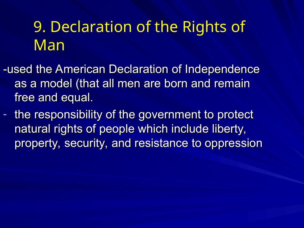 Compare and the contrast the American Constitution and the French Declaration of the Rights of Man (1789), as well as, compare American and French politics of the 18th and 19th centuries. Look for at least 3 points to address