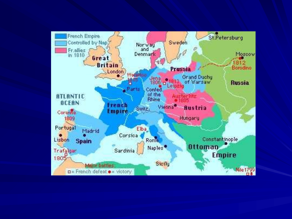 Identify two regions controlled by the French Empire according to the map. How did this control impact neighboring nations?