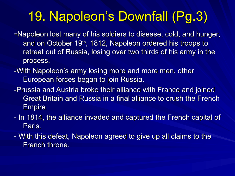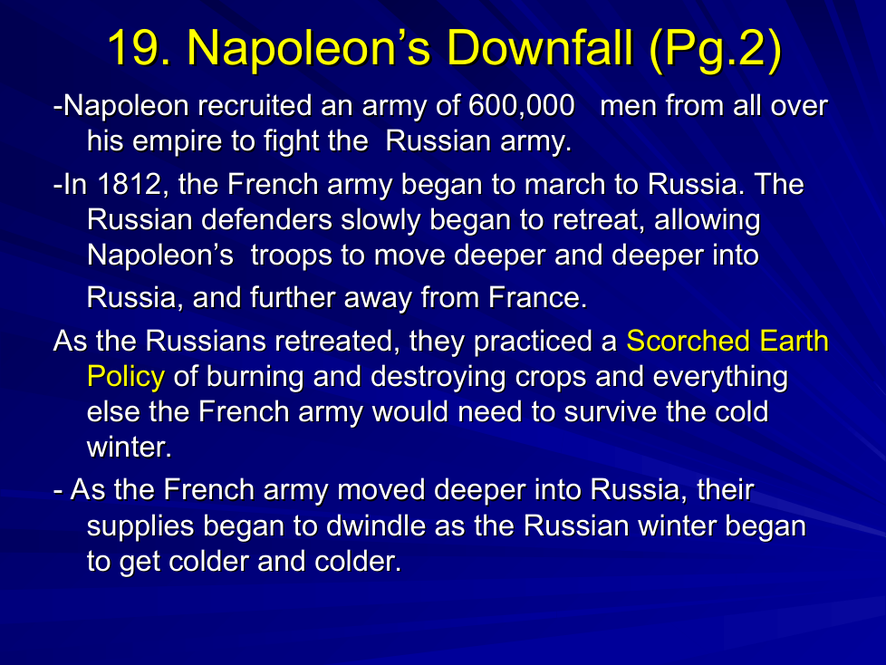 What were the main factors contributing to the decline of Napoleon's army during the Russian campaign in 1812?