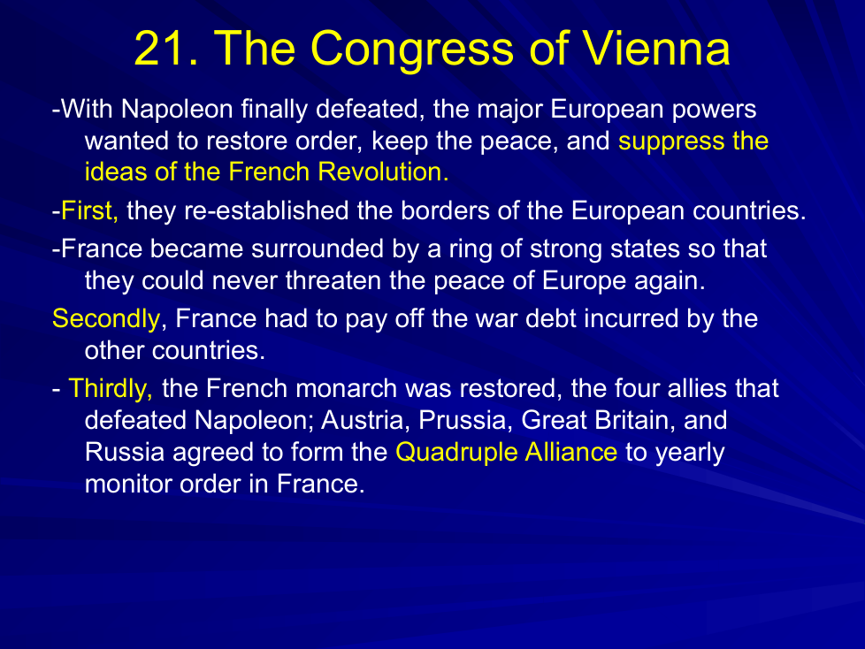 What were the main objectives of the major powers during the Congress of Vienna?