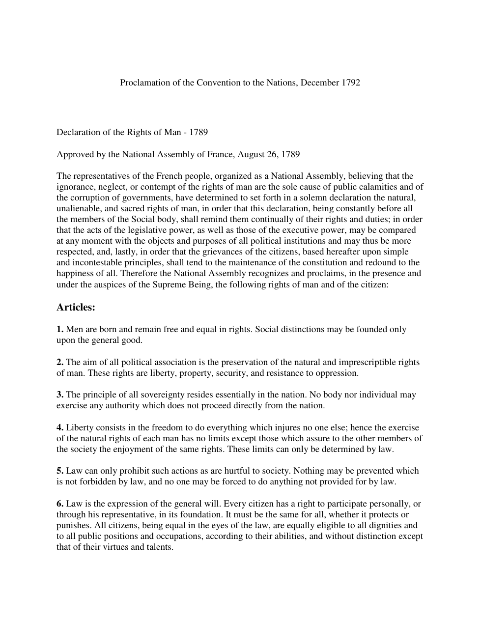 What natural rights are highlighted in the Declaration of the Rights of Man?