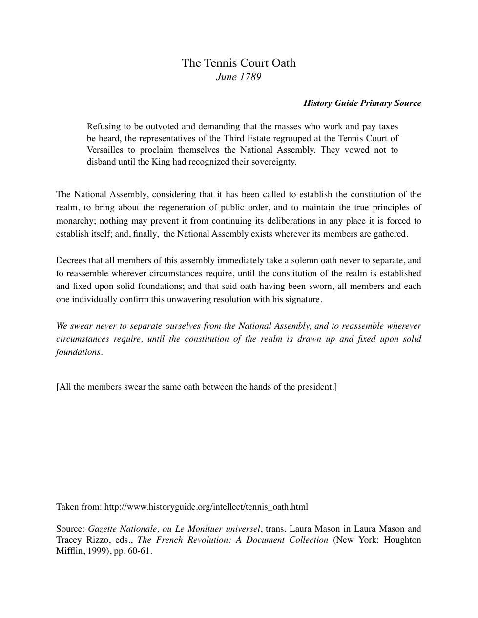 What risks did the delegates take by making the Tennis Court Oath? Would you have made the same decision in their place? Why or why not?