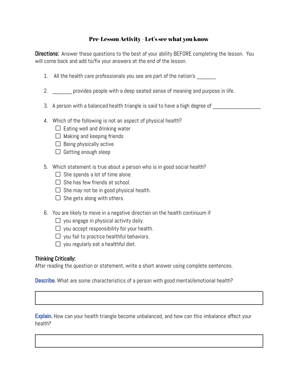 Lesson 1: Understanding Health