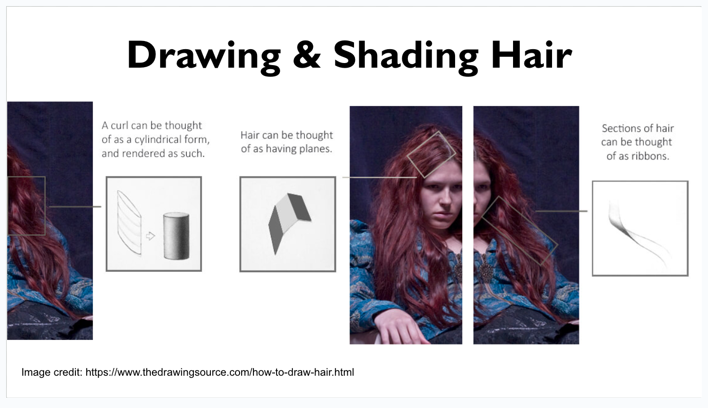 End Lesson Check-In: Take a moment to reflect on your understanding of the material covered in this lesson and compare your diagnostic drawing of your hair to your tutorial drawings of different hair.