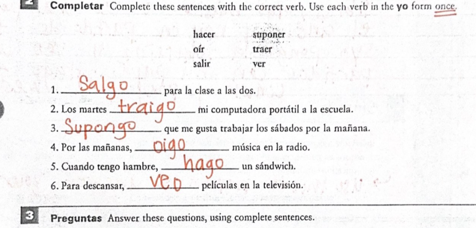 (Yo) _______ un disco de música latina. (oír, suponer, salir)