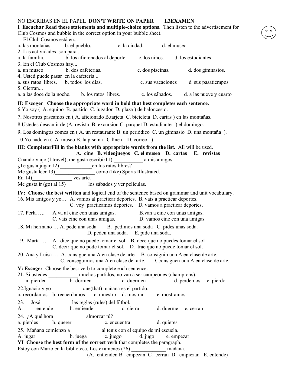 Yo siempre (A. sigo B. sego C. hago D. repito E. repite ) que debe estudiar más