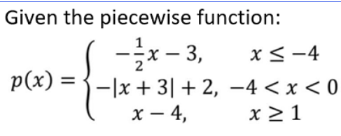 Graph the piecewise function. Turn in your graph to your teacher.