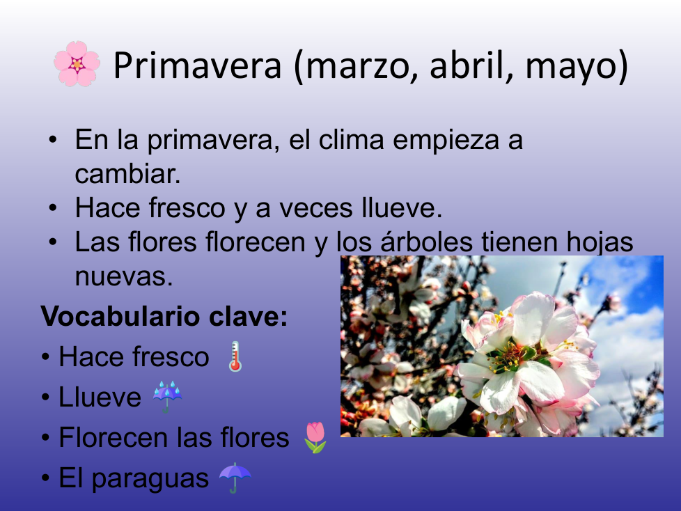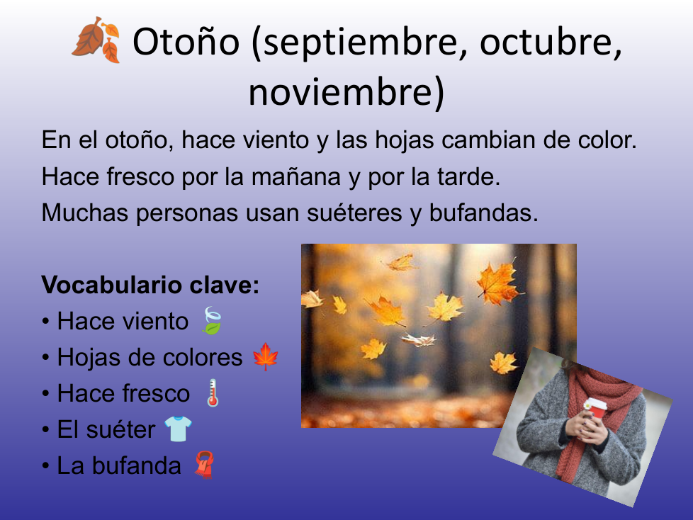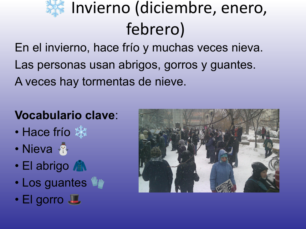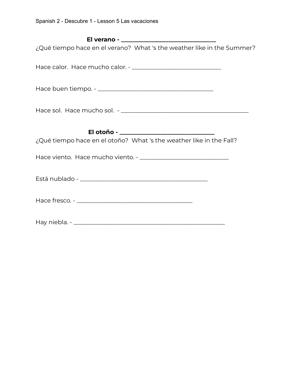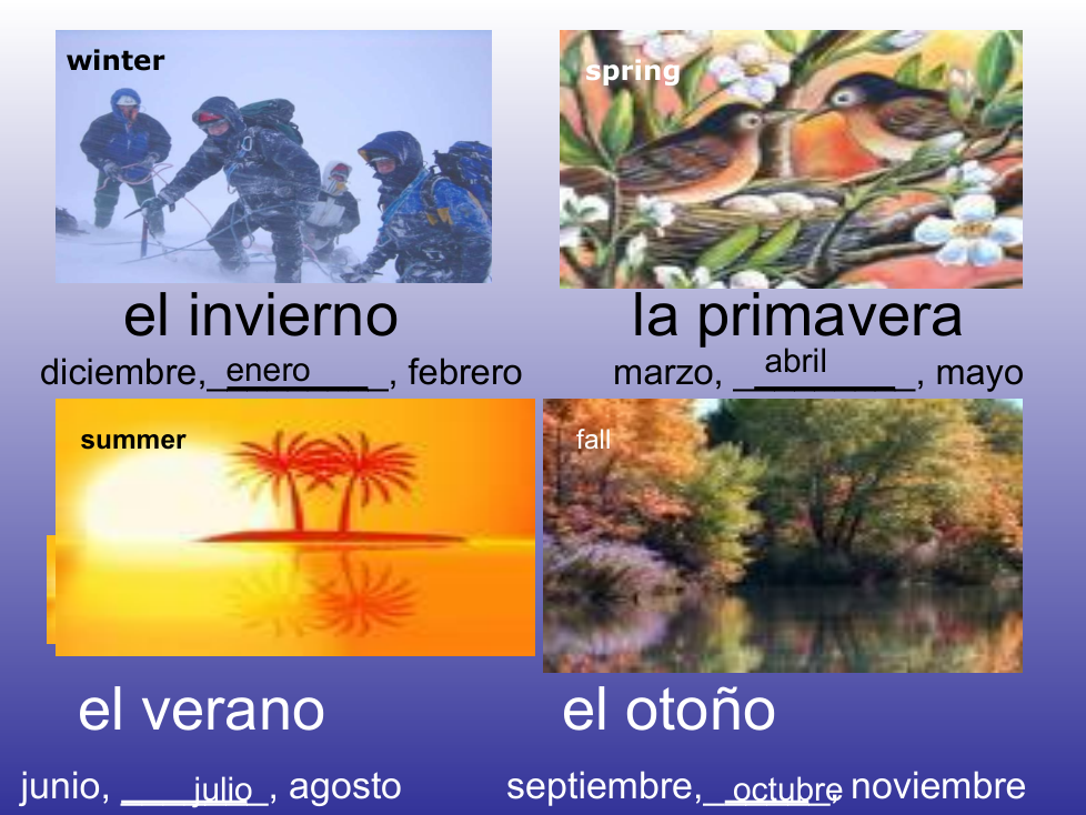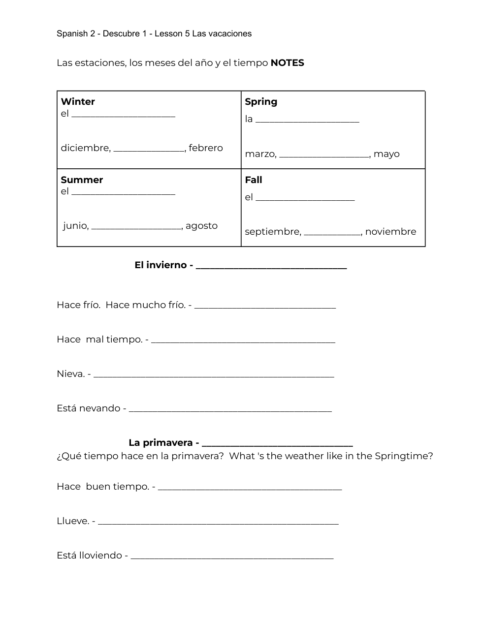 2 NOTAS (Vocabulario) Las estaciones, los meses y el tiempo