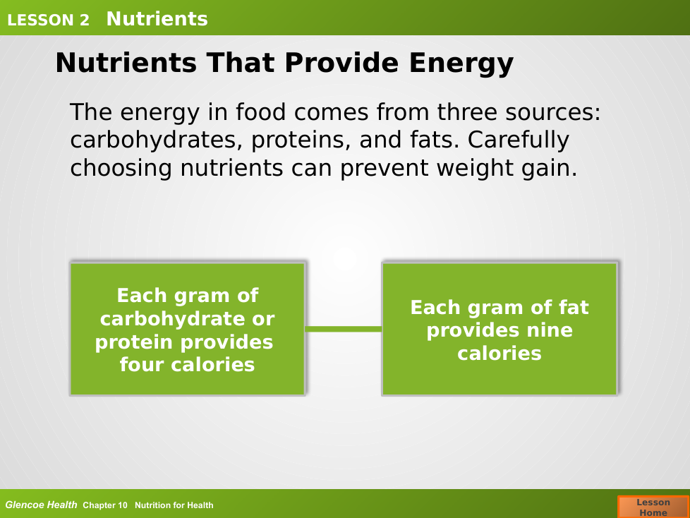 Based on this information, if someone is trying to lose weight which nutrient/s should they limit most? Explain your answer.