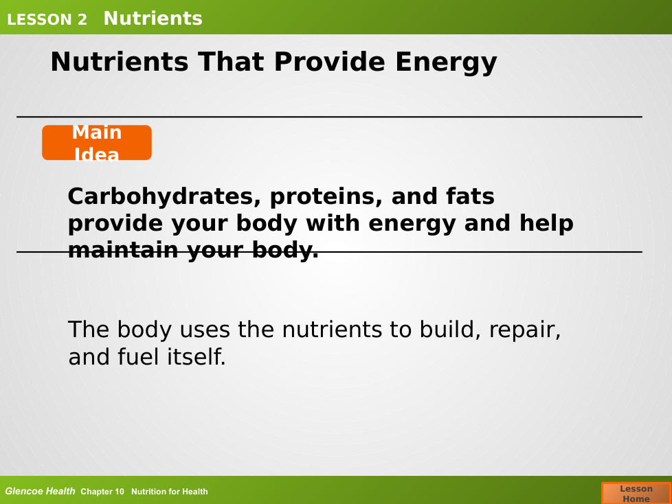 Which nutrients can your body use as sources of energy? Name them in the ORDER your body uses them.