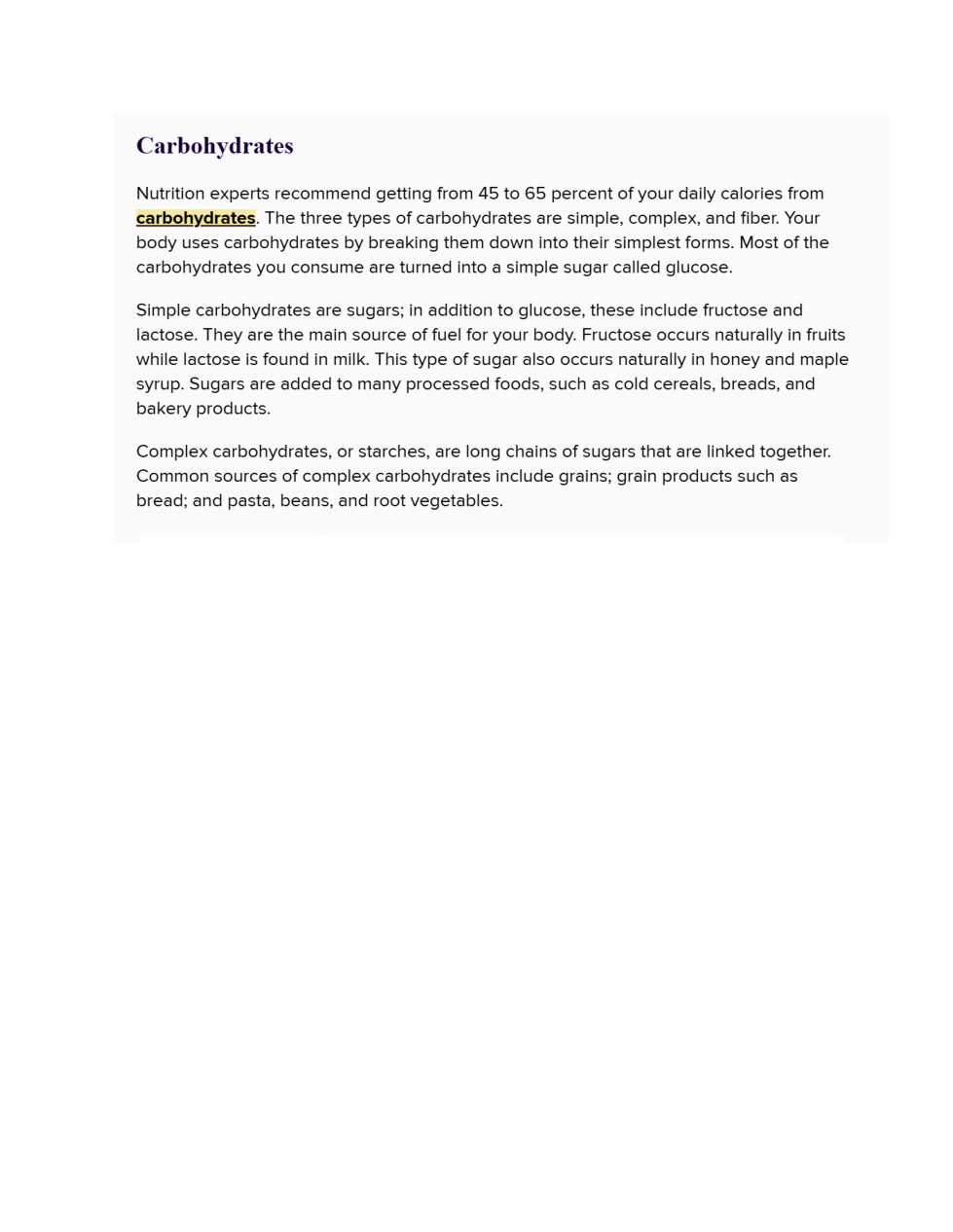 Now that you have learned what carbohydrates are, look back at question 15 and what you ate yesterday. What percentage of that do you BELIEVE to be Carbohydrates?