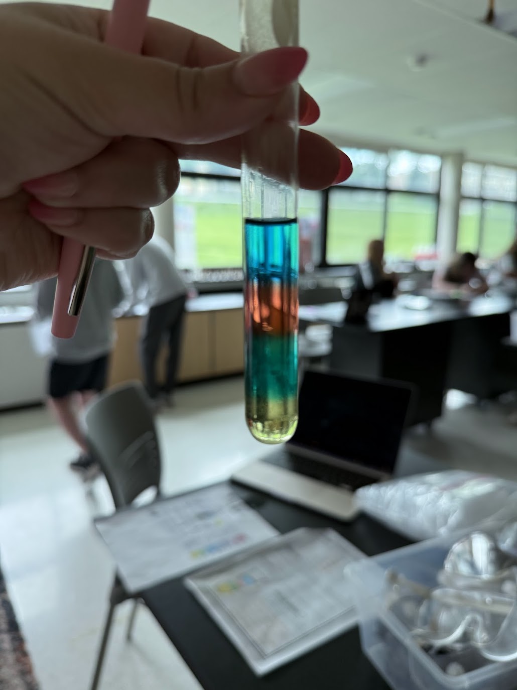 What is the physical property that can be used to identify matter and is responsible for creating these layers in the test tube?