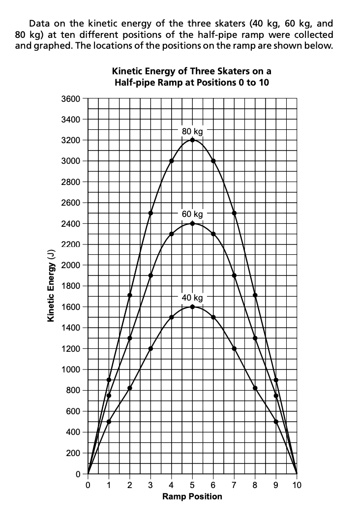 According to the graph and your experience in science, how is the kinetic energy of a moving object related to the mass of that object?