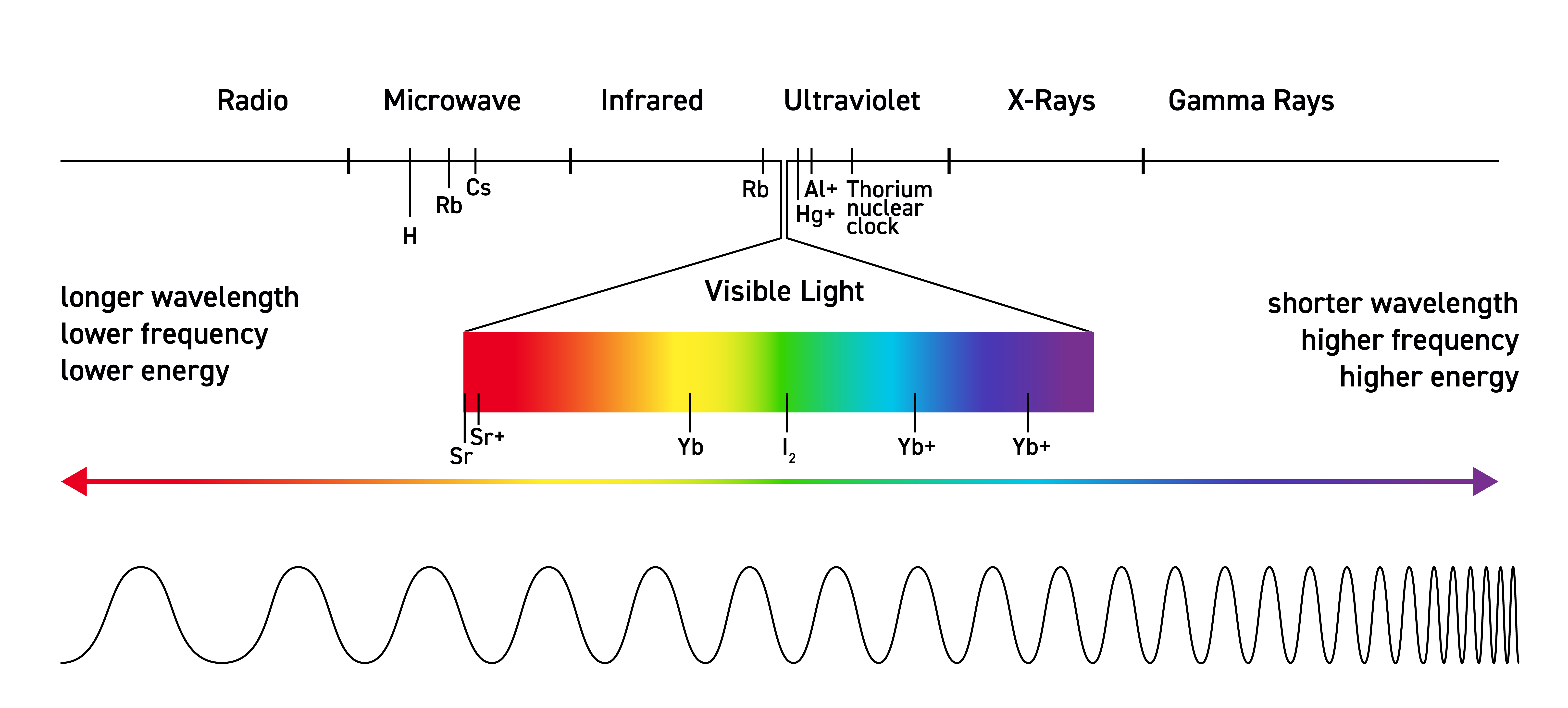 What happens to the energy of the waves within the electromagnetic spectrum as you move from radio waves to gamma waves?
