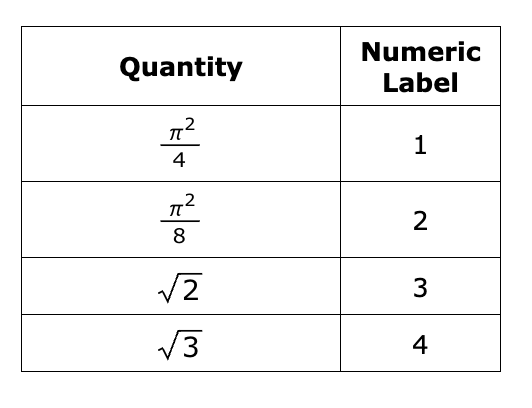 The table shows four quantities. Each quantity is assigned a numeric label.
