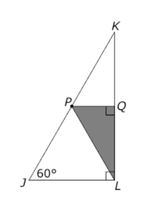 In the figure, JLK is a right triangle, point P is the midpoint of side JK, and segment PQ is parallel to segment JL.