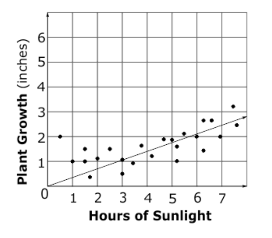 The scatterplot shows the amount of sunlight some tomato plants received and the amount each plant grew.