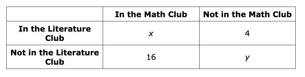 A group of students were asked if they are in the Math Club and if they are in the Literature Club. Partial results are shown in the table.
