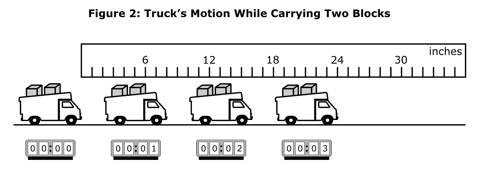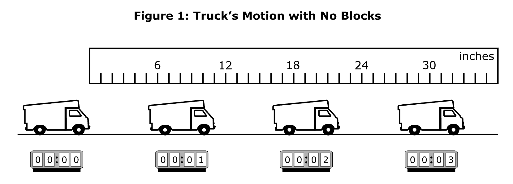 How far will the truck in Figure 1 have travelled after moving for 4 seconds?