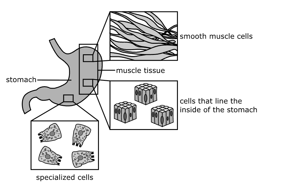 The stomach helps break down food and move it throughout the body. This diagram shows the structure of the stomach.