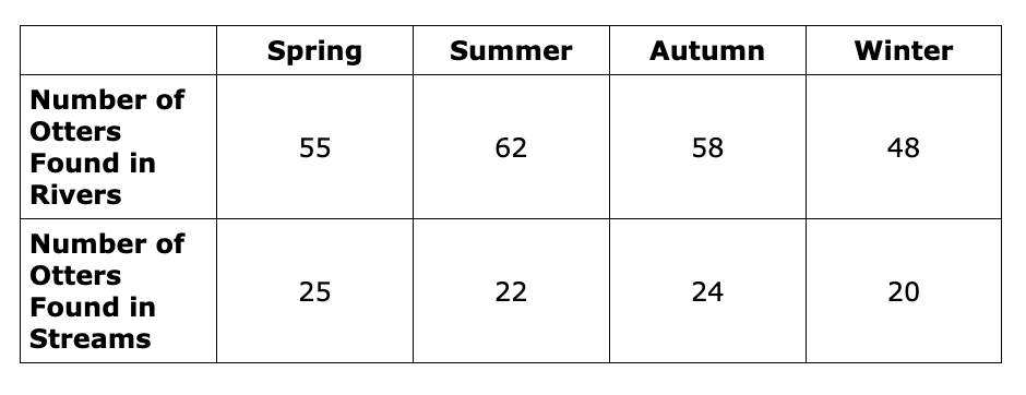 The data table below shows the population of otters in the rivers and streams of a region in North Carolina.