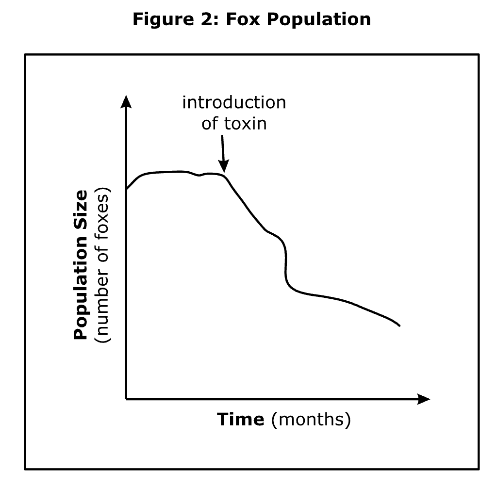 Scientists have detected a toxin* in the river supply, but it seems to affect only the foxes in the ecosystem. The graph below (Figure 2) shows how the fox population has changed since the toxin was introduced.