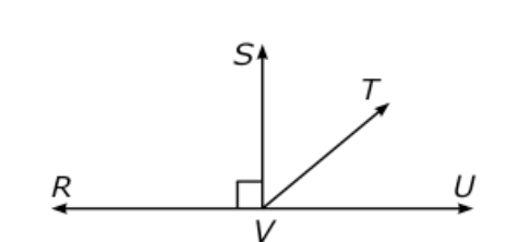 RVU is a straight line and ∠TVU has a measure of 40° in this figure.
