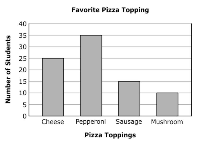 Fourth-grade students were surveyed about their favorite pizza topping. This graph shows the results.