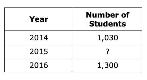 In 2015, there were more students than in 2014 but fewer than in 2016. Which could be the number of students in 2015?