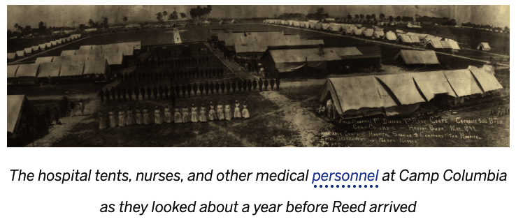 Reed quickly loaded his bags into a carriage and drove through the bustling city streets of Havana and across eight miles of country roads until he reached the U.S. Army post at Camp Columbia. After dropping his bags at the Officers’ Quarters, he was off again, dashing across the grounds to visit Major Kean in the camp’s yellow fever hospital just outside the base.